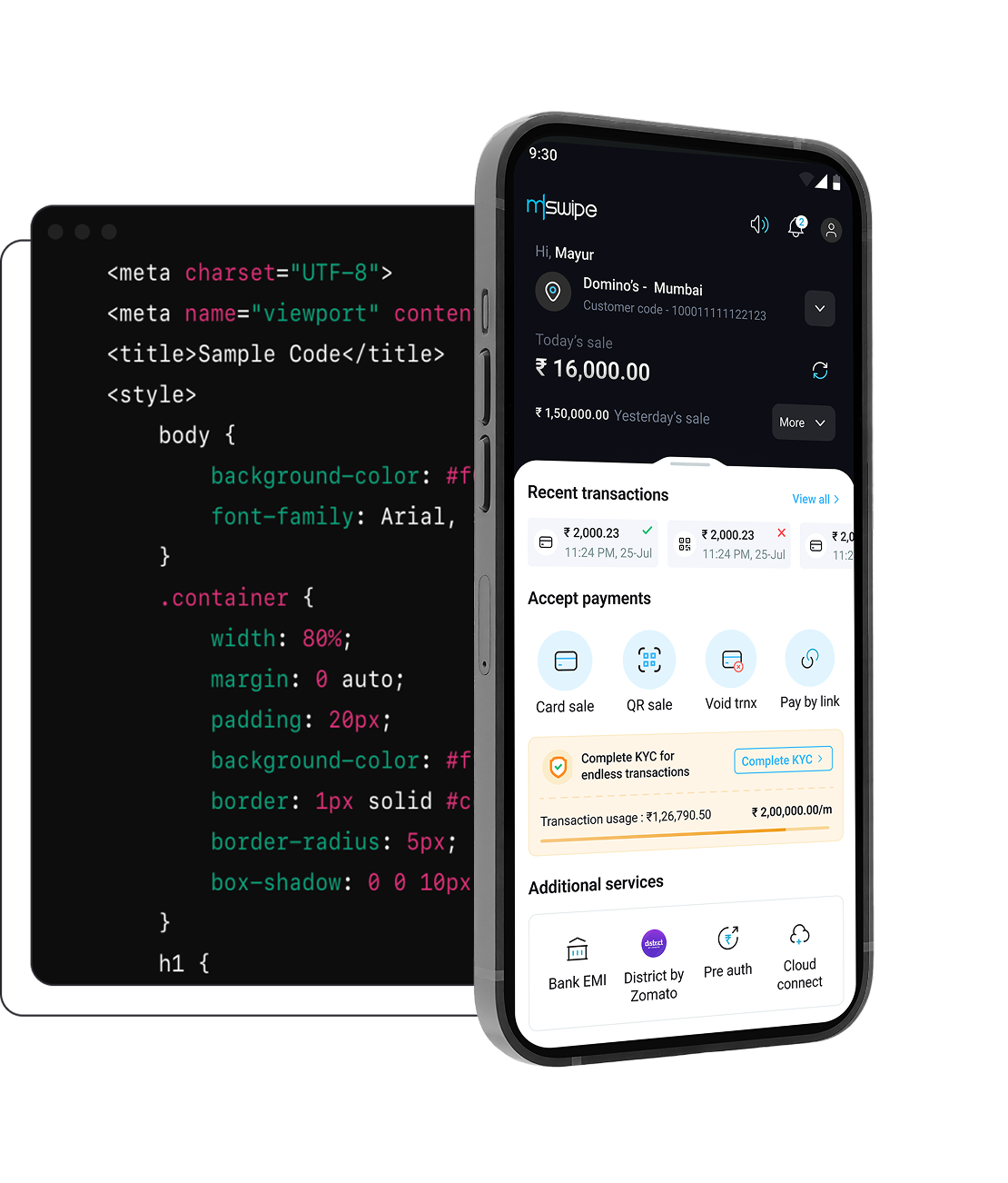 - Mswipe Payment Gateway – Accept online payments on your website or app via UPI, cards, and net banking.